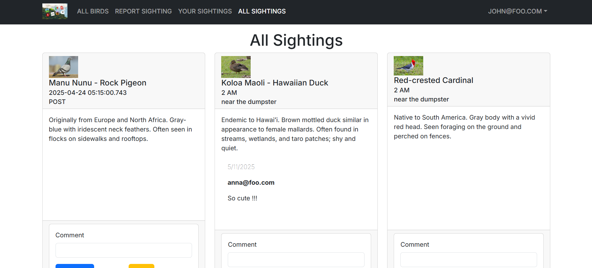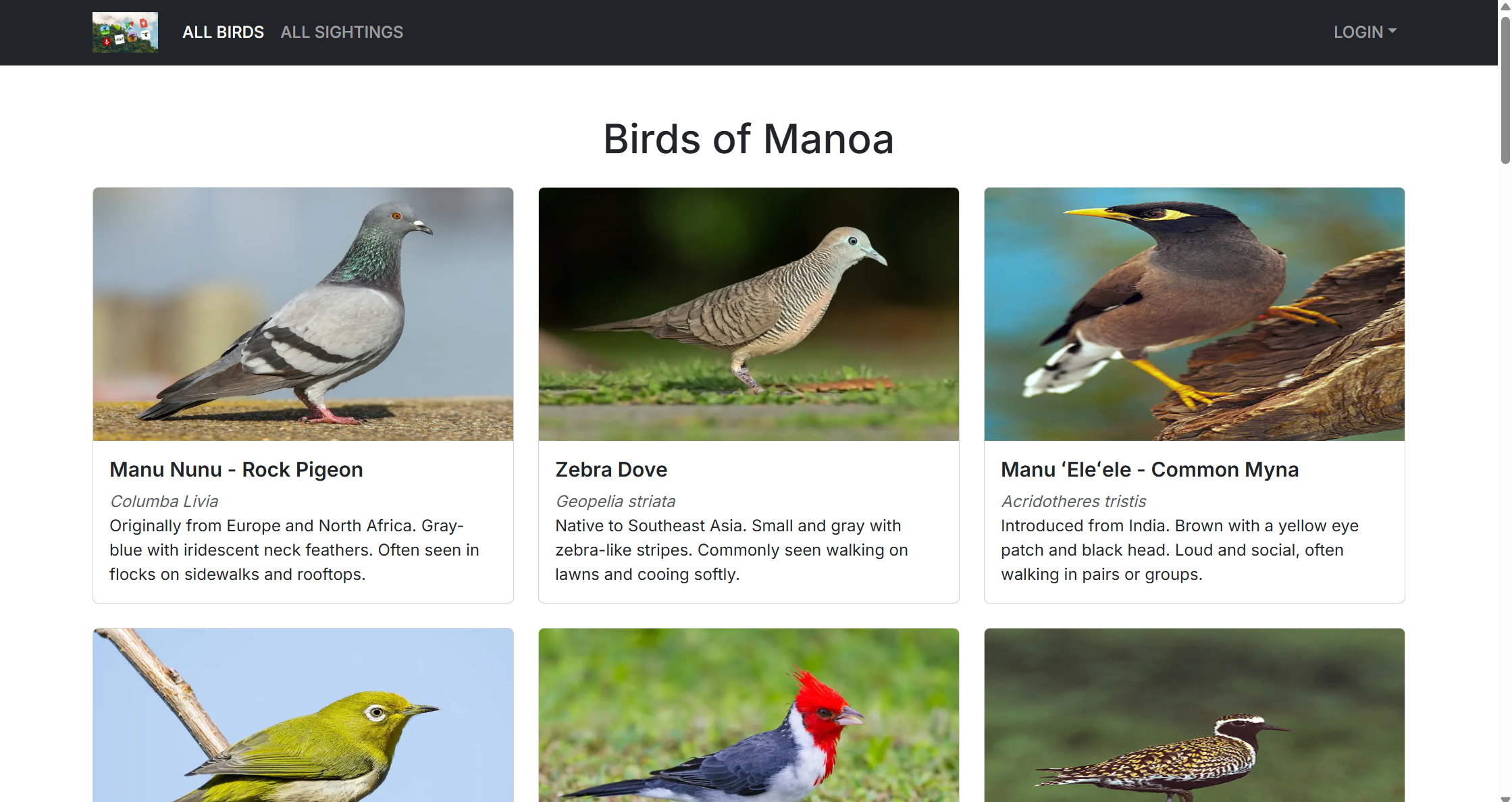 And the link to the deployed website itself: Manoa Bird Watch