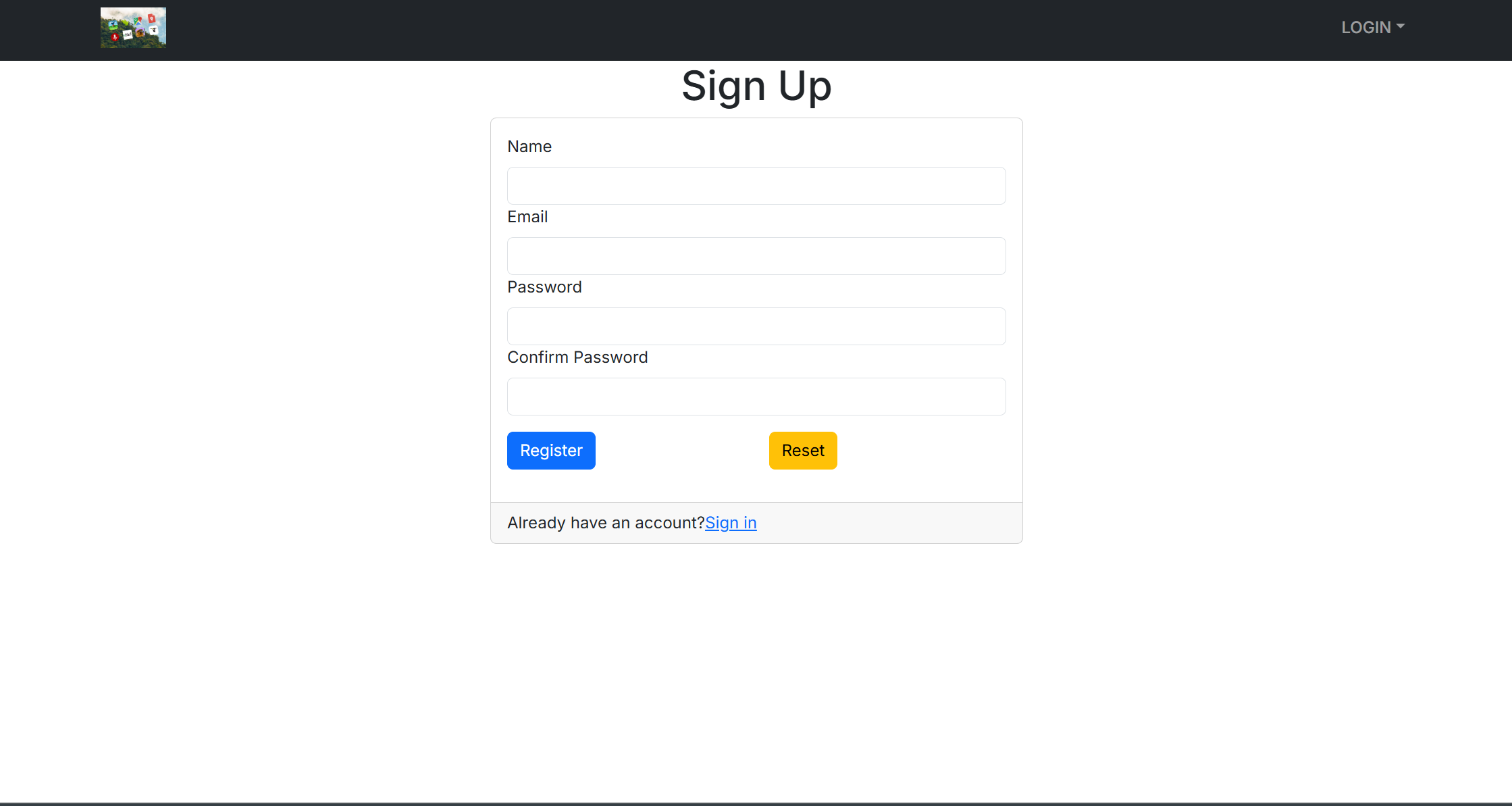 A sign in and sign up page.